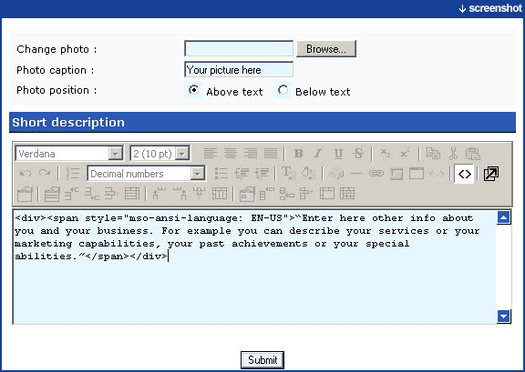 The first form is used for uploading your photo. Under the default thumbnail there’s the “Delete photo” button you can click if you do not want to have an image on the page.
